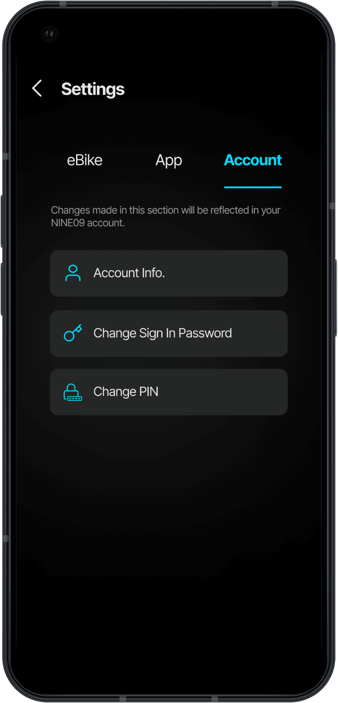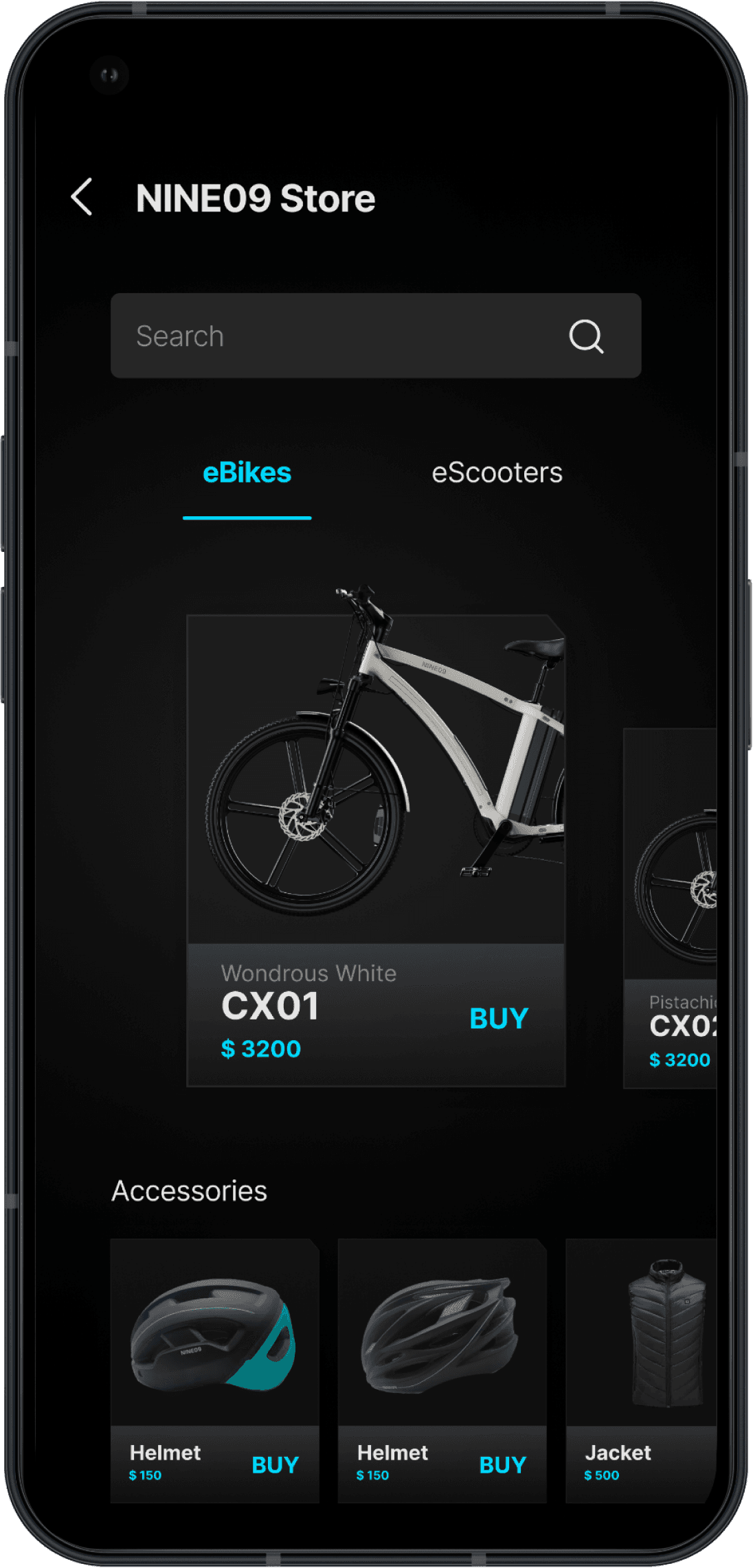An in-app store for NINE09 products and eBike accessories