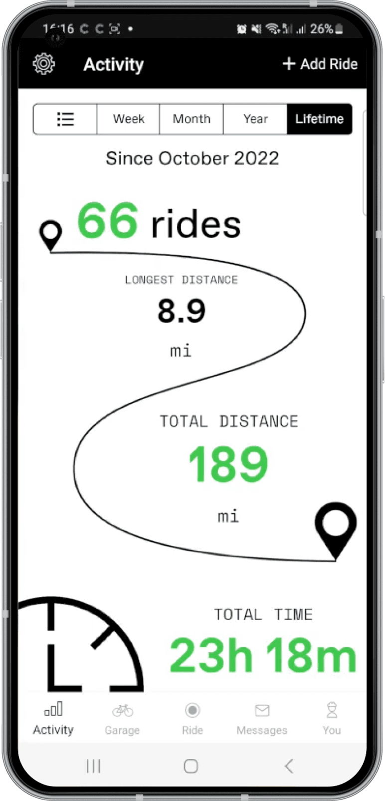 Knowing about their own riding activity in the past will create a sense of personalization and belongingness with the product.