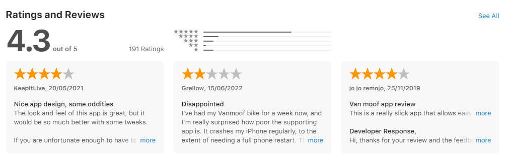 Vanmoof, Cowboy, Cannondale, Aventon and Specialized Mission Control were some of the leading eBikes in the market. Since the applications of these eBike didn’t provide much access without their eBike itself, I had to rely on User Feedbacks on online forums, unboxing videos and reviews on App store and Play store.