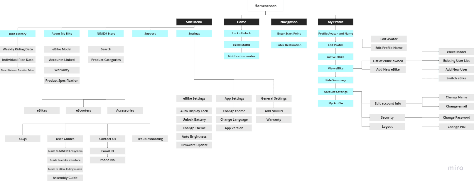 Discussions with the engineers and experiencing the eBike on my own helped me map out the scope of the eBike and where the app can fit in.