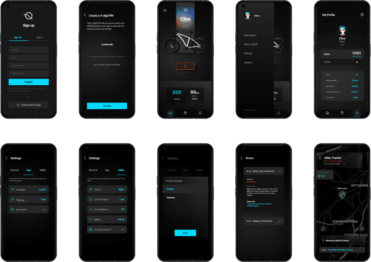 The NINE09 eBike needs an application that supports its operations, making them more convenient, provides the user with a personalized experience of owning the eBike, and does all of this while giving a high sense of the brand’s superiority in quality.
