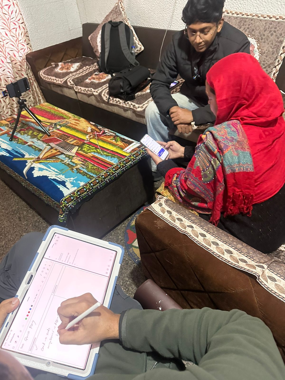 I was brought in to lead field research. Over five days in Sadpura, Haryana, I moderated 14 in-person sessions testing whether people who'd never seen a "send button" could actually use this app.